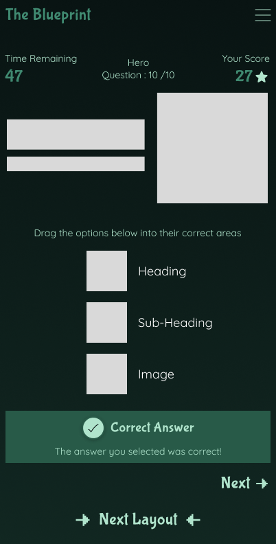 The Blueprint is a web-based learning platform that teaches UI and UX principles through a series of interactive mini-games. Each game focuses on a specific concept, allowing designers of all skill levels to practice and reinforce their understanding in a more engaging format.