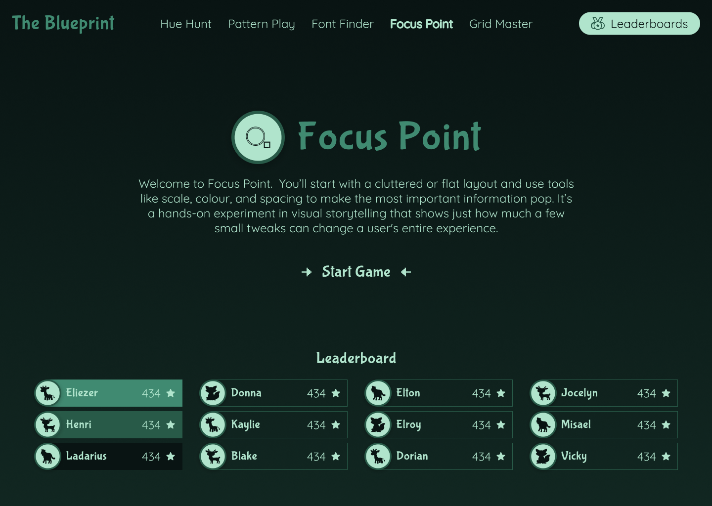 The Blueprint is a web-based learning platform that teaches UI and UX principles through a series of interactive mini-games. Each game focuses on a specific concept, allowing designers of all skill levels to practice and reinforce their understanding in a more engaging format.